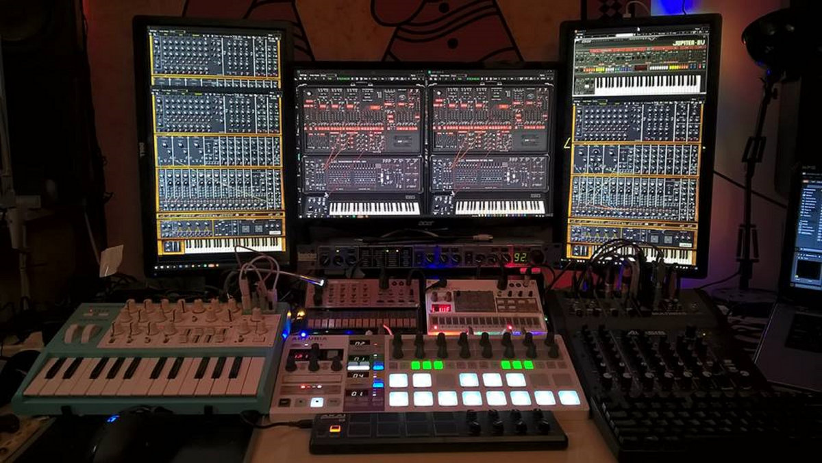 My first Berlin School attempt using the Micro Brute, Volca Keys, Volca Sample and the Arturia V Collection Soft Synths